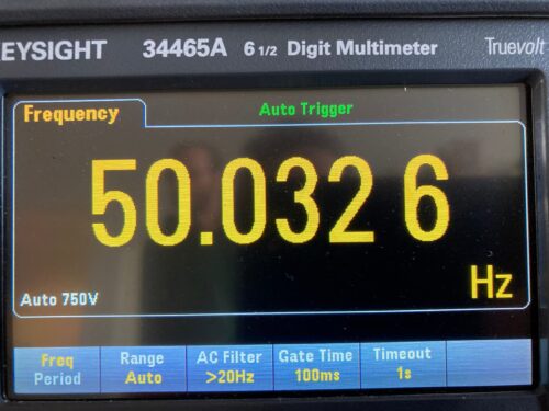 Le sinus de sortie est très propre ; la tension est bien de 230 V ; la fréquence est bien de 50 ou de 60 Hz.