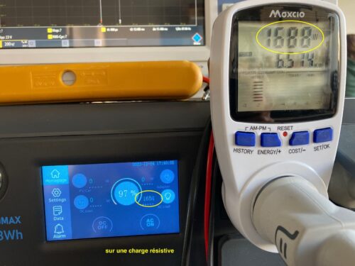 La puissance consommée (affichée sur l'écran ou sur l'appli) n'est identique à celle d'un wattmètre de prise que sur une charge purement résistive (testé sur un chauffage électrique) ; pour le bureau l'écart est important : l'onduleur affiche 200 W quand le wattmètre indique une consommation autour de 110 W. C'est normal, mais pour anticiper l'autonomie de l'onduleur, il vaut donc mieux l'essayer sur le poste consommateur.