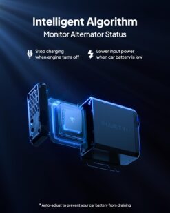 Le Charger 1 utilise un algorithme intelligent qui surveille en permanence la tension de la batterie du véhicule. Il ajuste automatiquement la charge pour éviter tout épuisement — vous ne serez jamais bloqué en route !