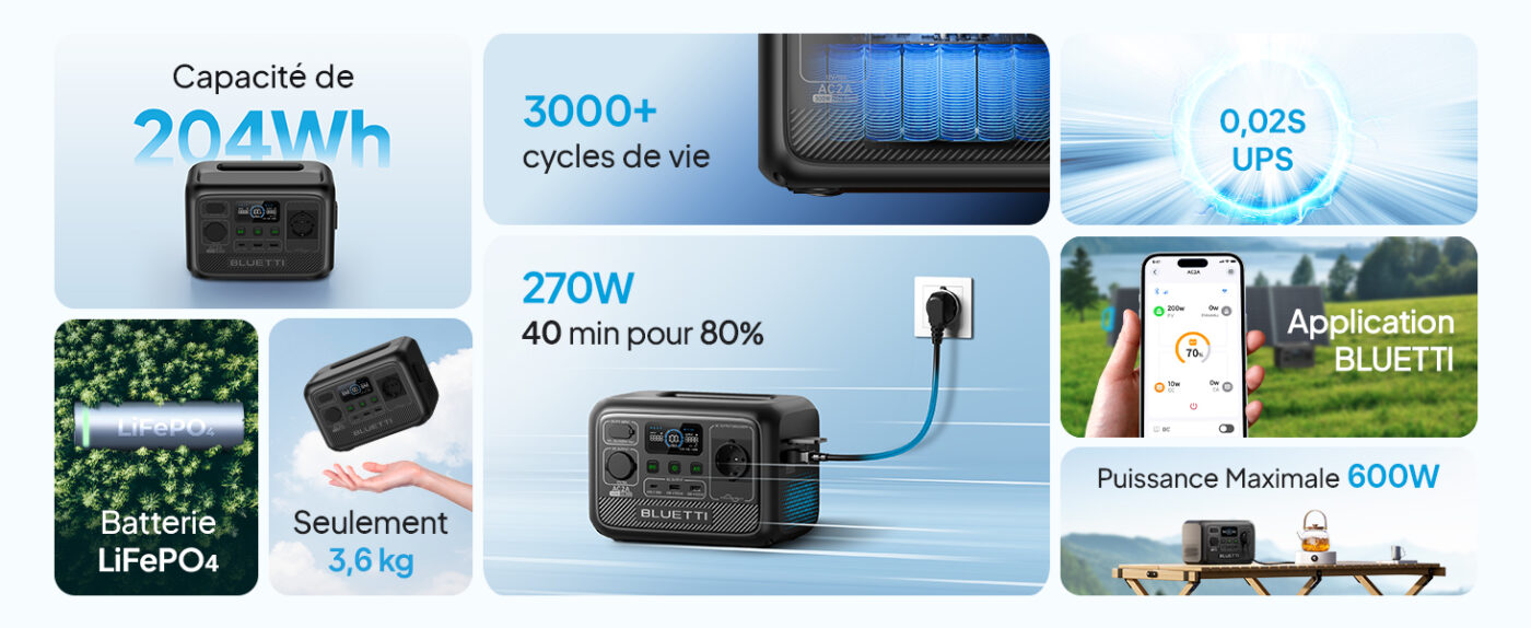 BLUETTI AC2A Estación de Energía Portátil 204Wh | Solo 3,6 kg