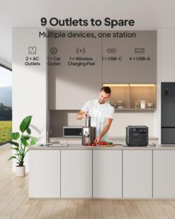 Avec sa puissance de 1800W (pic 2700W via Power Lifting), l’AC180 alimente la plupart des appareils du quotidien : réfrigérateur (16h), ordinateur portable (12 charges), drone (25 charges), CPAP médical (toute la nuit), sèche-cheveux (2h), projecteur (9,8h), et même des appareils résistifs comme une bouilloire ou un petit radiateur grâce au Power Lifting.