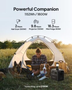 Avec 1152Wh de capacité, la BLUETTI AC180 vous accompagne partout : camping, van life, chantiers ou secours maison en cas de coupure.