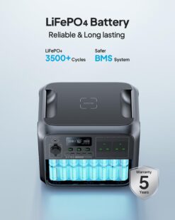 La BLUETTI AC180 utilise des cellules LiFePO4 offrant plus de 3500 cycles de charge à 80% de capacité. En utilisation quotidienne, cela représente plus de 10 ans de durée de vie. C’est 2 fois plus durable que les batteries lithium-ion classiques, et c’est pour cette raison que BLUETTI offre une garantie constructeur de 5 ans.