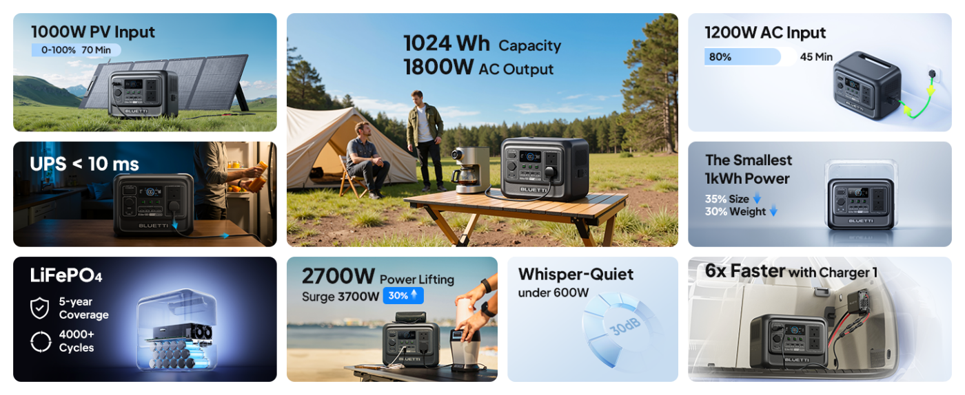 BLUETTI Elite 100 V2 Powerstation 1024Wh | 35% Lichter Compacter