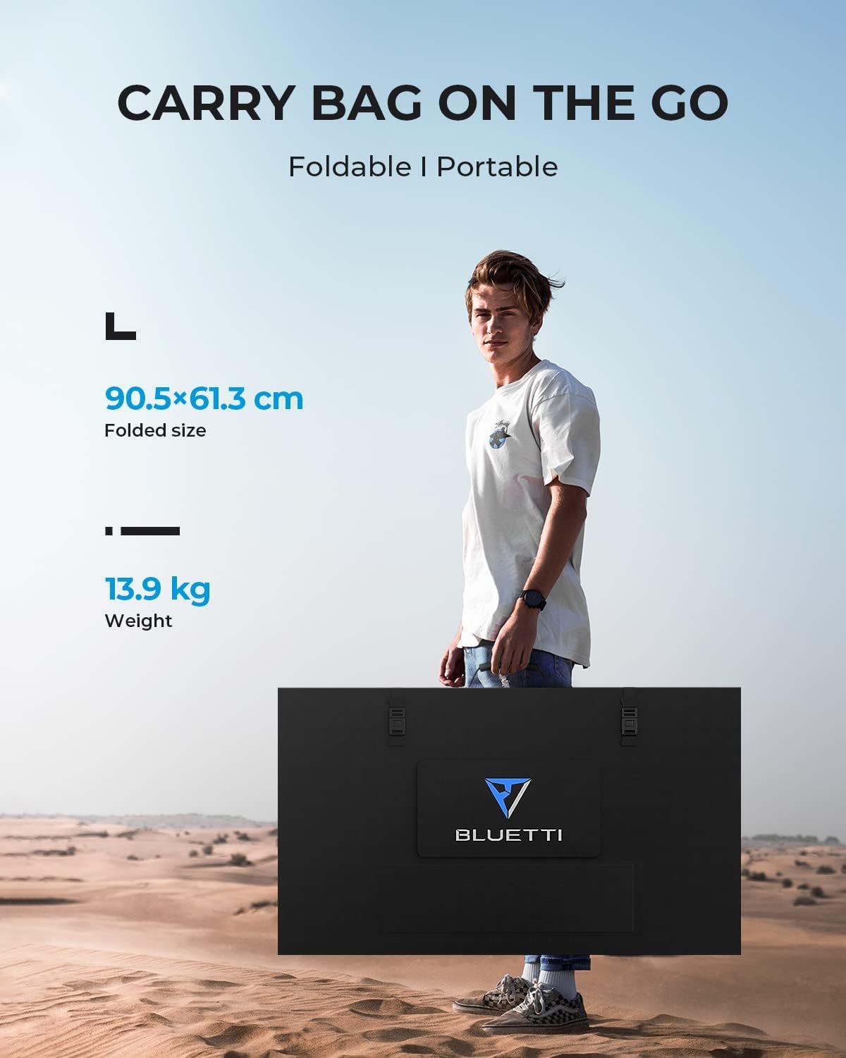 Malgré sa puissance de 350W, ce panneau solaire reste remarquablement transportable grâce à son design pliable format valise. La poignée intégrée permet de le porter confortablement d’une seule main.