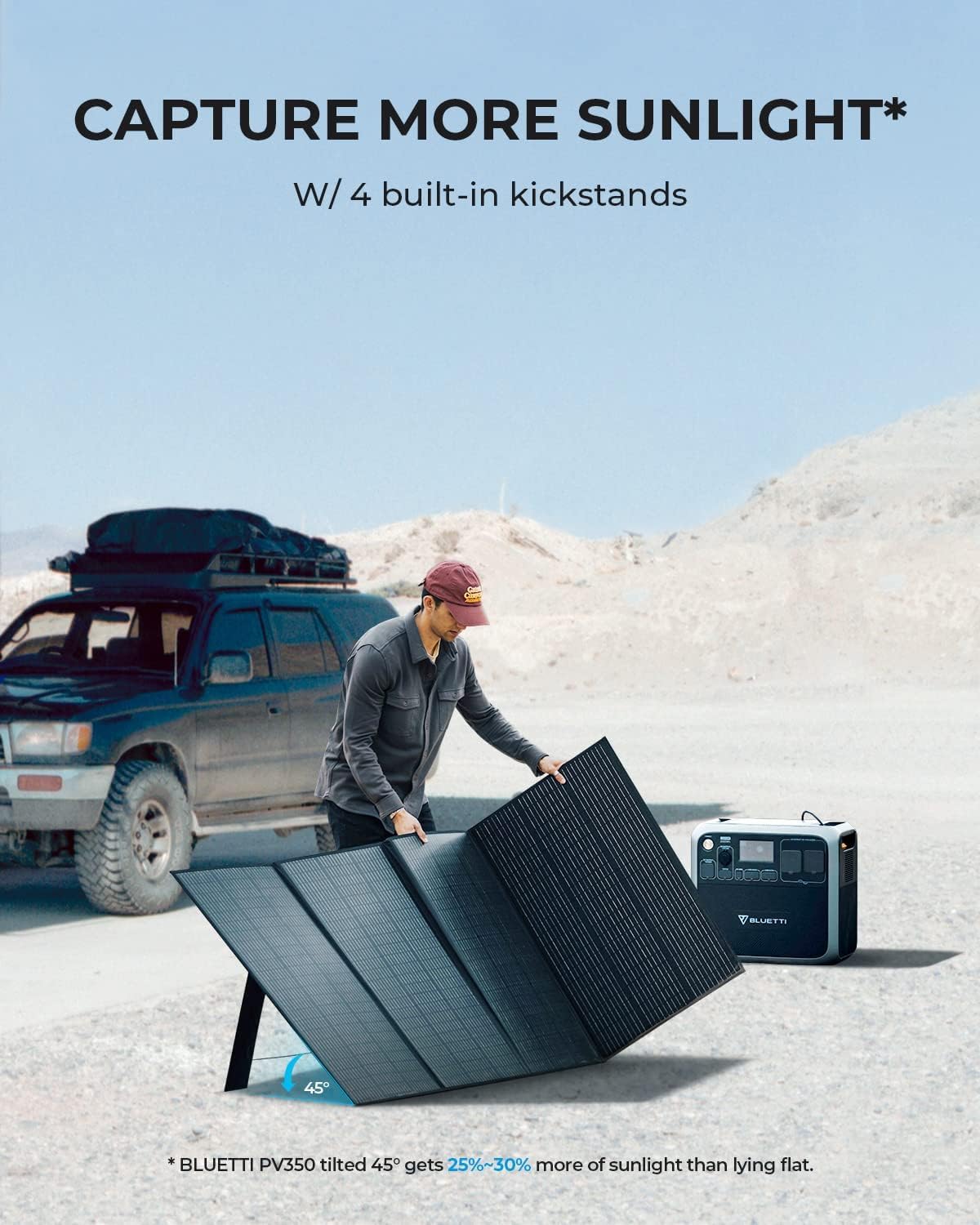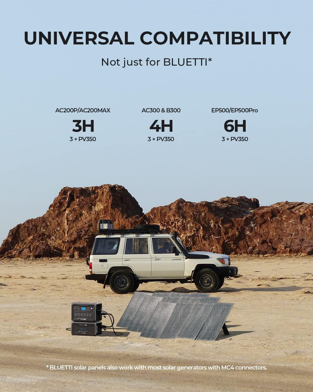 350W de puissance solaire pour recharger vos stations BLUETTI de grande capacité en un temps record. Énergie propre, gratuite et illimitée.